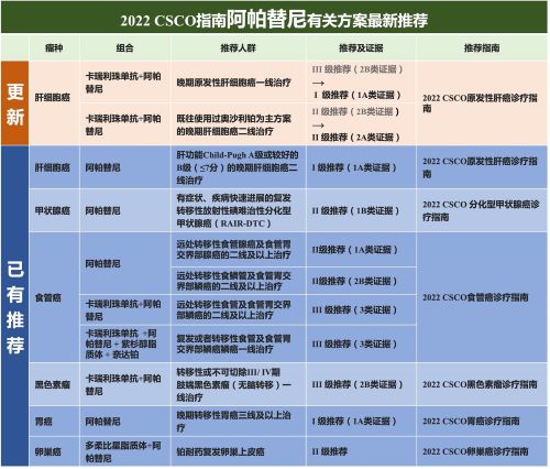 阿帕替尼单药方案、“双艾”组合方案或“双艾”再联合化疗方案,在肝细胞癌、甲状腺癌、食管癌、黑色素瘤、胃癌和卵巢癌领域,获得2022 CSCO指南11项推荐。