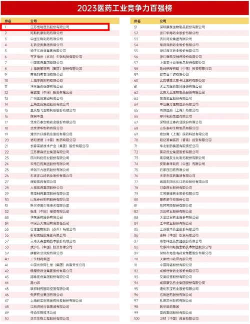 2023医药工业竞争力百强榜发布,金年会|jinnianhui位列榜首
